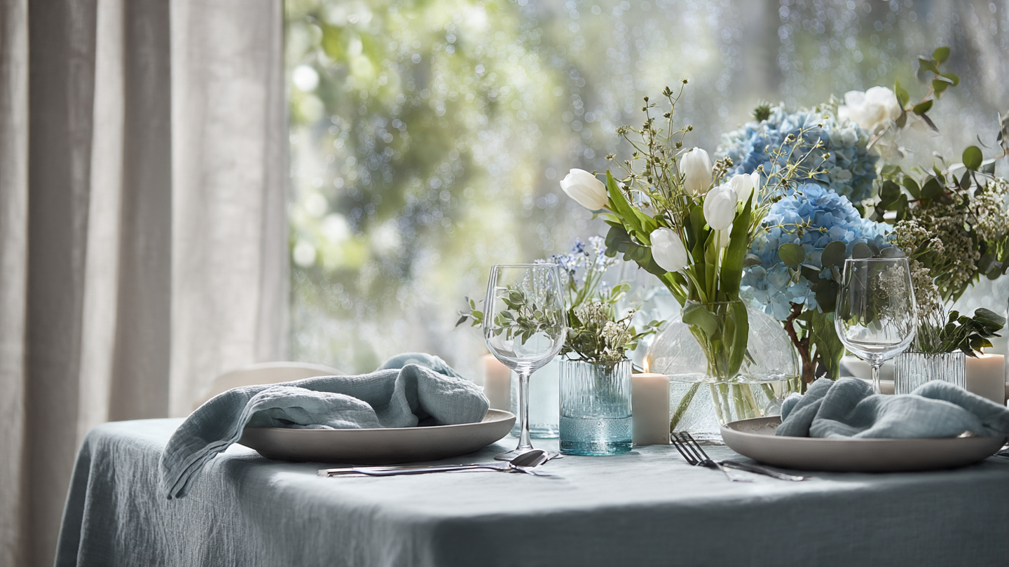 April rain is not an obstacle to beautiful table styling. It is the inspiration for it. The grey skies, the clear water, the first brave blooms, the smell of wet earth: all of it is rich visual material for a dining table that feels seasonal, intentional, and genuinely original.