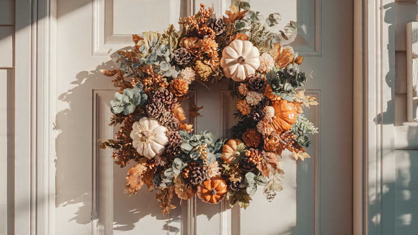 Whether you choose the timeless appeal of mixed fall leaves, the sophisticated elegance of white pumpkins, or the modern minimalism of eucalyptus and wheat, you’re creating more than decoration. You’re creating a welcome. A first impression. A statement that says your home embraces autumn fully.